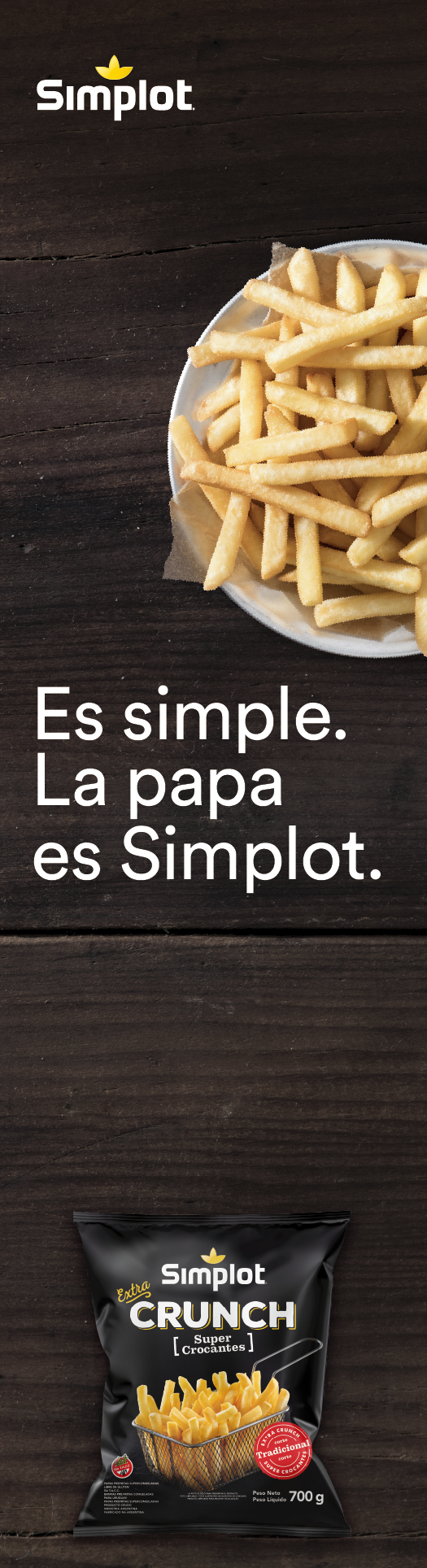 As part of Merci Advertising, I designed and produced various print and in-store materials for Simplot, including posters displayed across Buenos Aires and collaborative pieces with El Club de la Milanesa. I also created supermarket assets such as freezer wraps, POP displays, signage, and dividers, and proposed a key visual for the “Simplot Magic” line in collaboration with Disney, along with designs for social media and national brand activations.